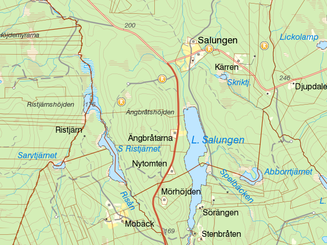 Karl XII:s väg 1718 Väg med namn och tradition. Enligt traditionen gick Karl XII eller hans armé på den här vägen till Norge. Vägen fortsätter till Gunnarskog och Gräsmark. I Ristjärn, i mossen mellan Mellan och S Ristjärn finns stocklämningar av en kavelbro. Oscar Andersson (nudöd) visste exakt var han såg dem i sin ungdom. I öster torde Karl XII:s väg till stor del gått i nuvarande väg. Sagesman, Kjell Hallberg, Rinnen, tidigare bosatt i Salungen. [Källa Fornsök].